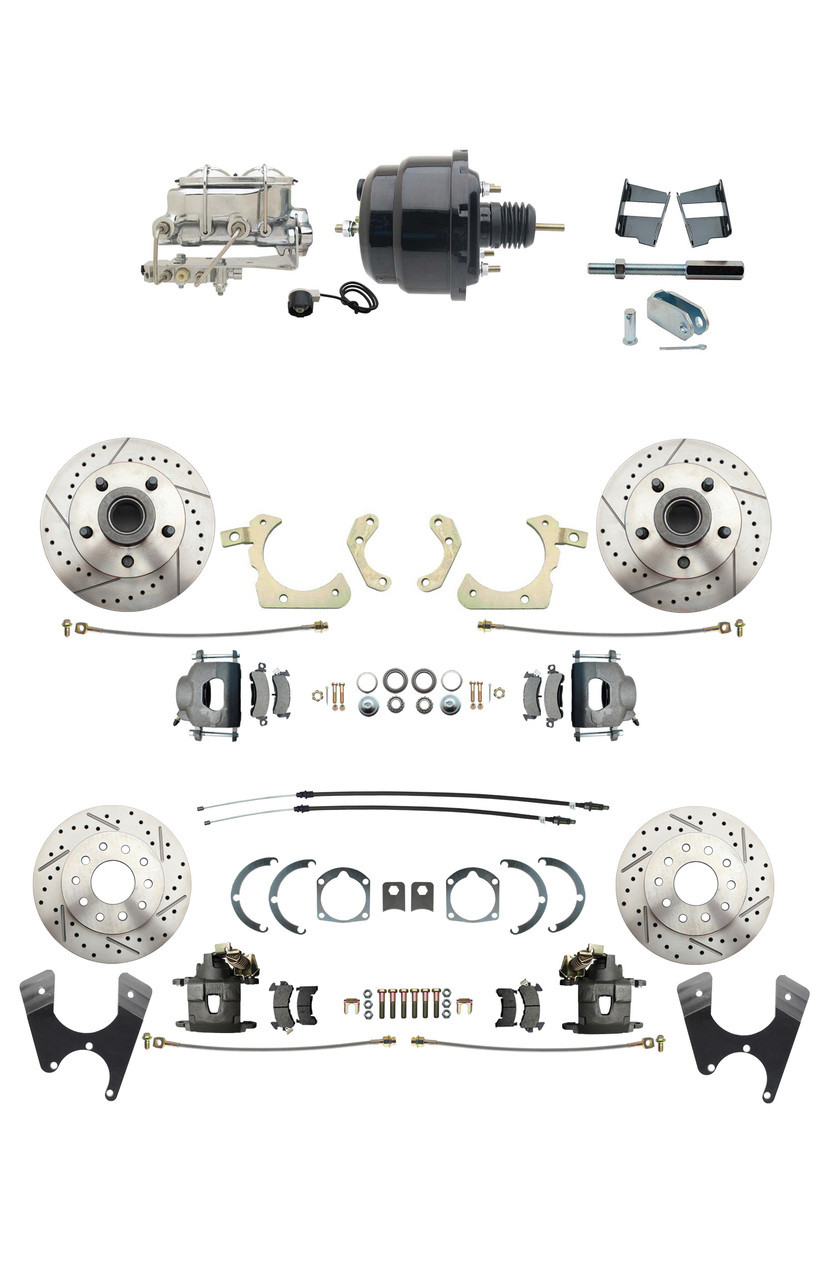 DBK59641012FSLX-GMFS2-726 - 1959-1964 GM Full Size Disc Brake Kit Drilled/Slotted Rotors (Impala, Bel Air, Biscayne) & 8" Dual Powder Coated Black Booster Conversion Kit w/ Chrome Master Cylinder Bottom Mount Disc/ Drum Proportioning Valve Kit