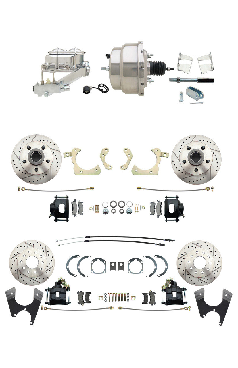 - DBK59641012FSLXB-GMFS2-331 - 1959-1964 GM Full Size Front & Rear Power Disc Brake Kit Black Powder Coated Calipers Drilled/Slotted Rotors (Impala, Bel Air, Biscayne) & 8" Dual Chrome Booster Conversion Kit w/ Chrome Master Cylinder Left Mount Disc/