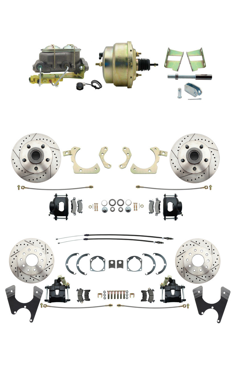 - DBK59641012FSLXB-GMFS2-210 - 1959-1964 GM Full Size Front & Rear Power Disc Brake Kit Black Powder Coated Calipers Drilled/Slotted Rotors (Impala, Bel Air, Biscayne) & 8" Dual Zinc Booster Conversion Kit w/ Cast Iron Master Cylinder Bottom Mount Dis