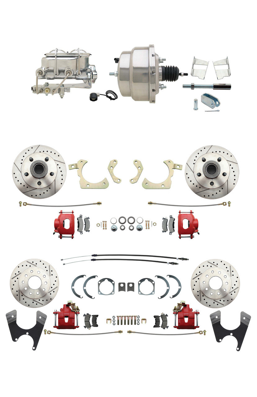 - DBK59641012FSLXR-GMFS2-330 - 1959-1964 GM Full Size Front & Rear Power Disc Brake Kit Red Powder Coated Calipers Drilled/Slotted Rotors (Impala, Bel Air, Biscayne) & 8" Dual Chrome Booster Conversion Kit w/ Chrome Master Cylinder Bottom Mount Disc/