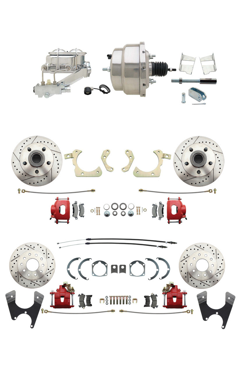 - DBK59641012FSLXR-GMFS2-331 - 1959-1964 GM Full Size Front & Rear Power Disc Brake Kit Red Powder Coated Calipers Drilled/Slotted Rotors (Impala, Bel Air, Biscayne) & 8" Dual Chrome Booster Conversion Kit w/ Chrome Master Cylinder Left Mount Disc/ Dr