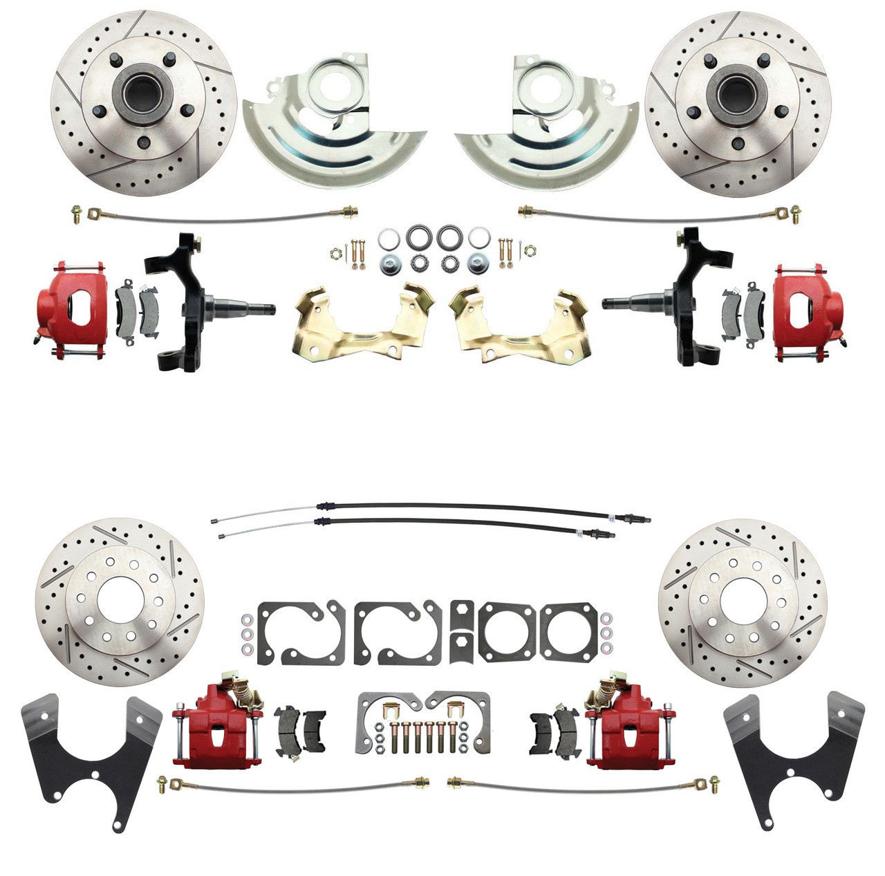 DBK6472D1012LX-R - 1964-1972 GM A Body (Chevelle, GTO, Cutlass) 2" Drop Front & Rear Disc Brake Kit w/ Drilled & Slotted Rotors Red Calipers