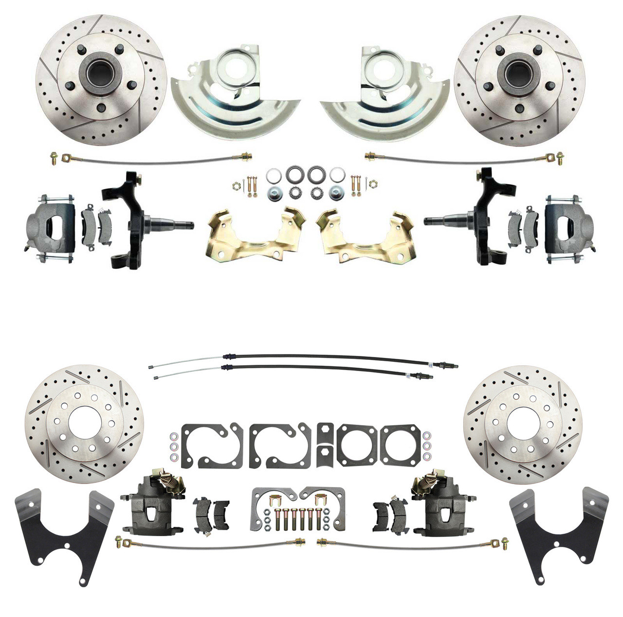 - DBK6472D1012LX - 1964-1972 GM A Body (Chevelle, GTO, Cutlass) 2" Drop Front & Rear Disc Brake Kit w/ Drilled & Slotted Rotors