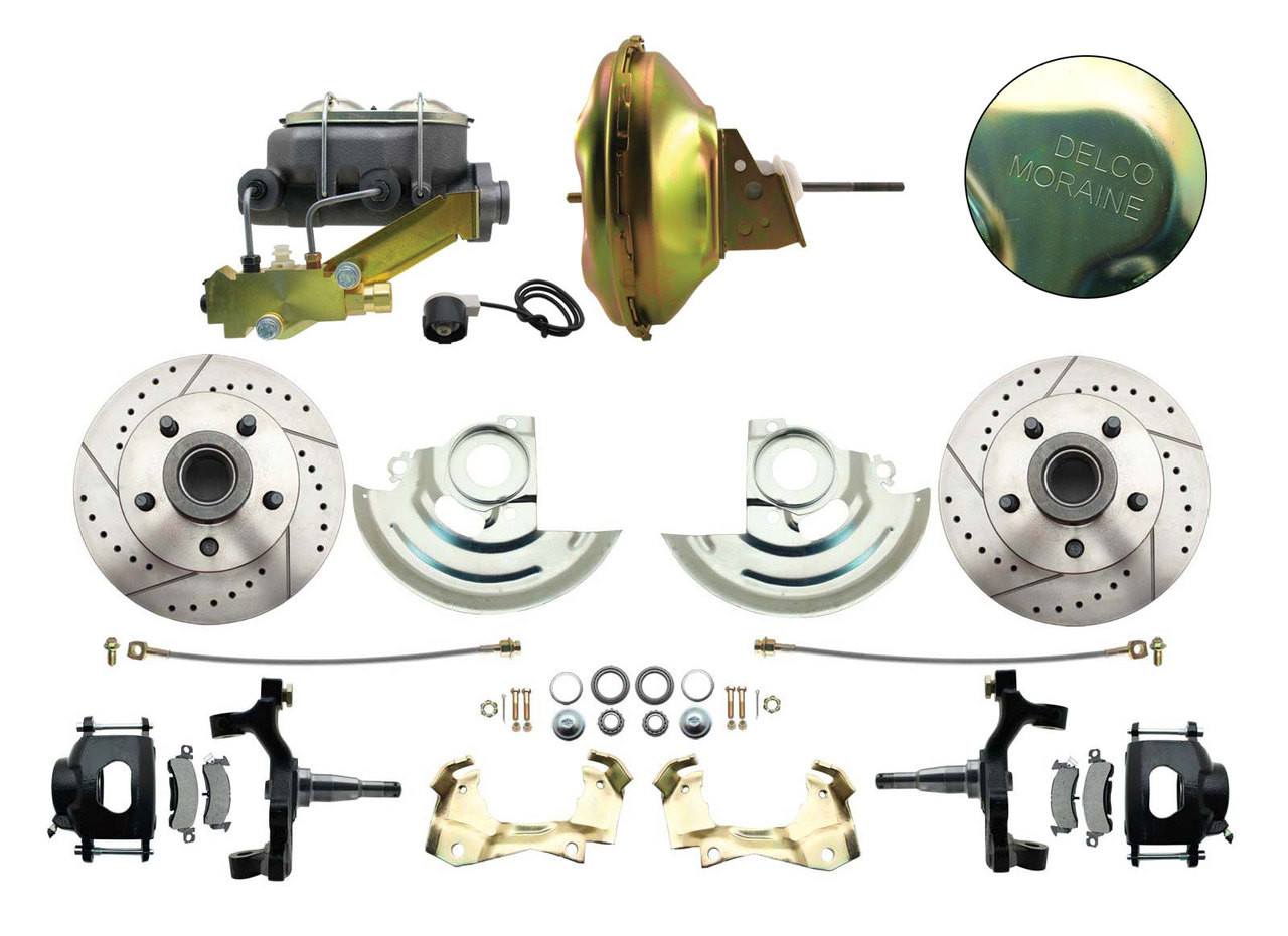 - DBK6472DLXB-GM-224 - 1964-1972 GM A Body Front Power 2" Drop Disc Brake Conversion Kit Drilled & Slotted & Powder Coated Black Calipers Rotors w/ 11" Single Delco Moraine Stamped Zinc Booster Kit
