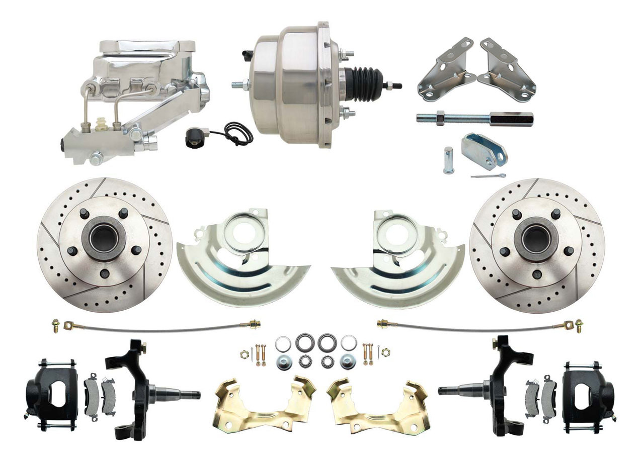 - DBK6472DLXB-GM-309 - 1964-1972 GM A Body Front Power 2" Drop Disc Brake Conversion Kit Drilled & Slotted & Powder Coated Black Calipers Rotors w/8" Dual Chrome Flat Top Booster Kit