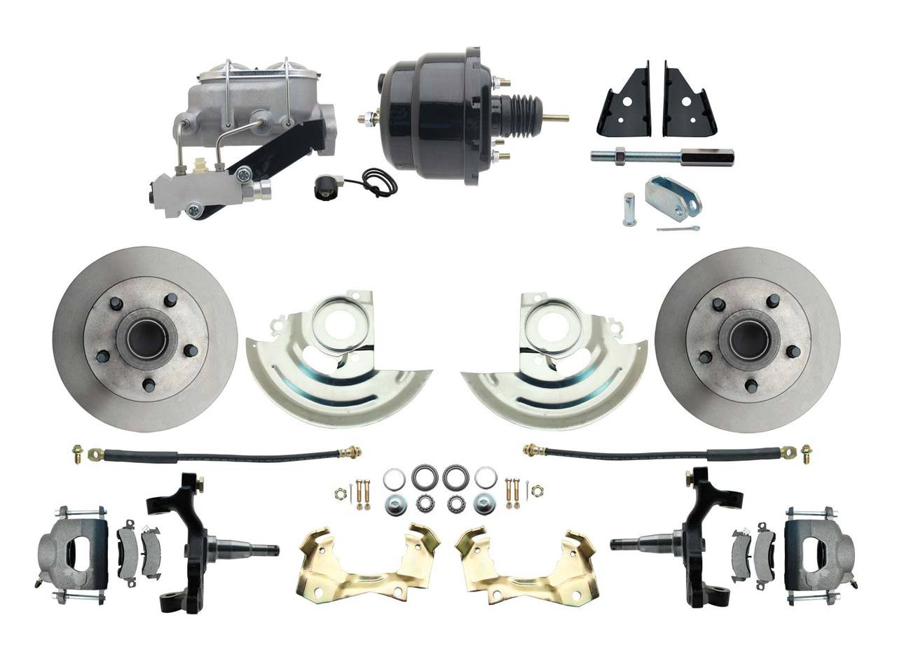 DBK6472D-GM-709 - 1964-1972 GM A Body Front Power 2" Drop Disc Brake Conversion Kit Standard Rotors w/ 8" Dual Powder Coated Black Booster Kit