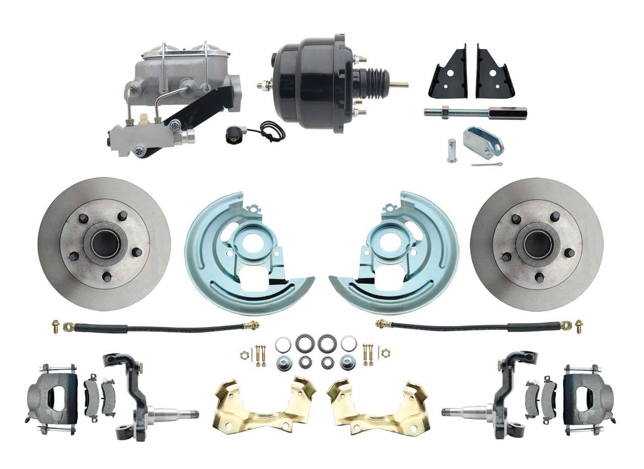 DBK6472-GM-709 - 1964-1972 GM A Body Front Power Disc Brake Conversion Kit Standard Rotors w/ 8" Dual Powder Coated Black Booster Kit