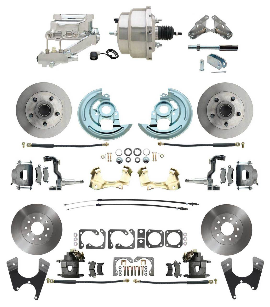 DBK64721012-GM-328 - 1964-1972 GM A Body Front & Rear Power Disc Brake Conversion Kit Standard Rotors w/8" Dual Chrome Flat Top Booster Kit