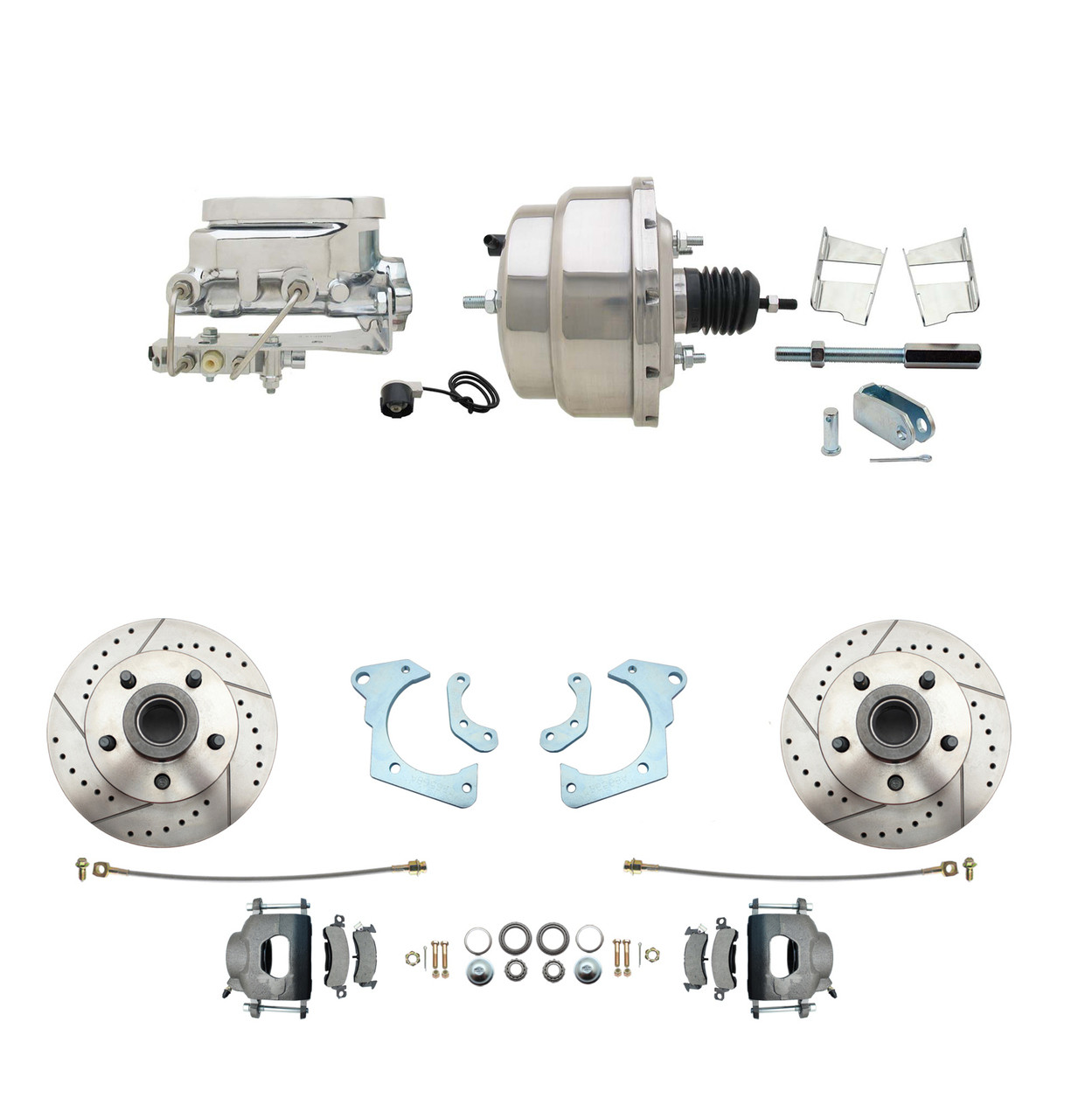 DBK6568LX-GMFS3-308 - 1965-1968 GM Full Size Disc Brake Kit Drilled/Slotted Rotors (Impala, Bel Air, Biscayne) & 8" Dual Chrome Booster Conversion Kit w/ Flat Top Chrome Master Cylinder Bottom Mount Disc/ Drum Proportioning Valve Kit