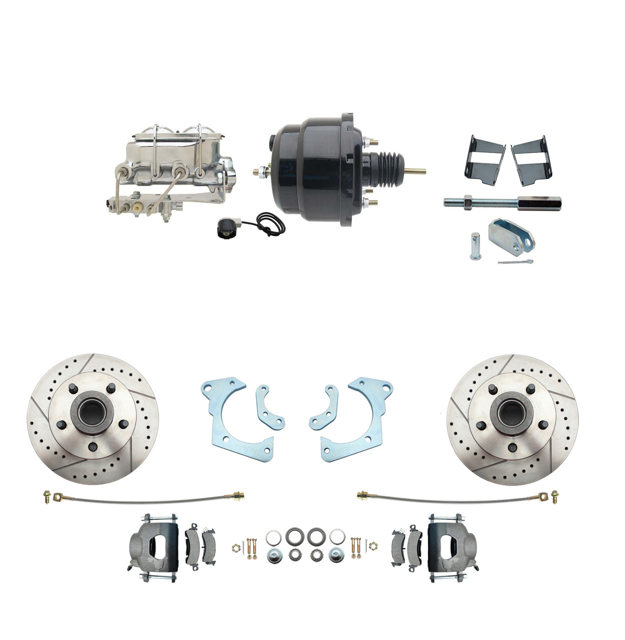 - DBK6568LX-GMFS3-712 - 1965-1968 GM Full Size Disc Brake Kit Drilled/Slotted Rotors (Impala, Bel Air, Biscayne) & 8" Dual Powder Coated Black Booster Conversion Kit w/ Chrome Master Cylinder Bottom Mount Disc/ Drum Proportioning Valve Kit