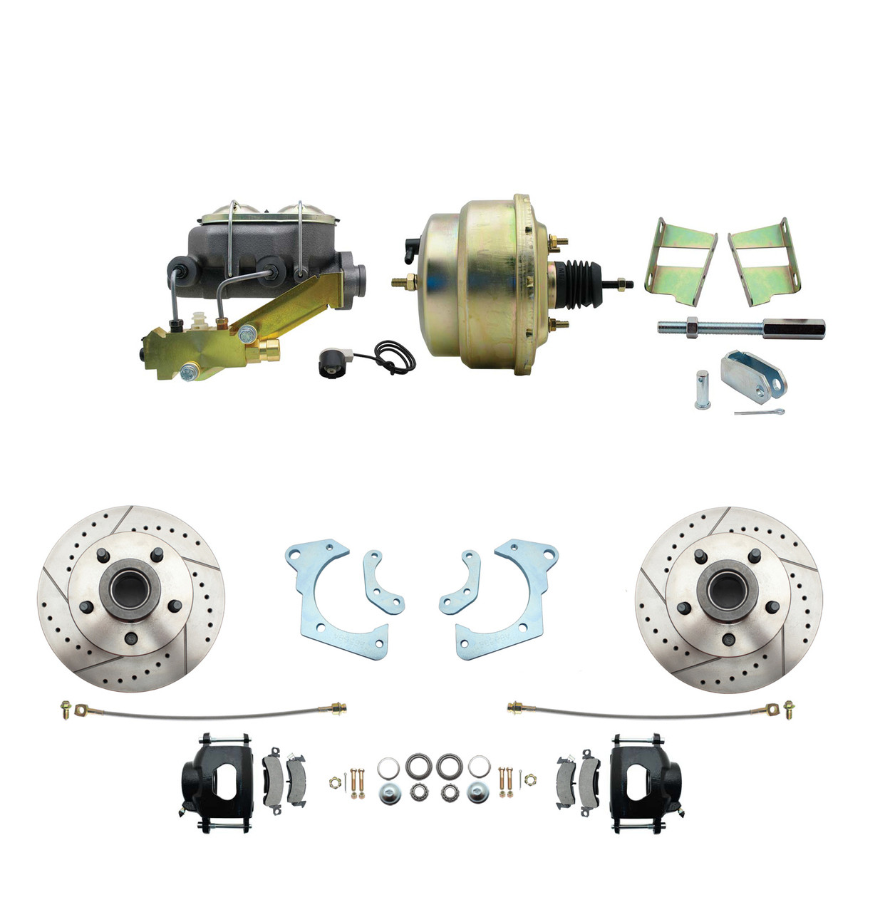 DBK6568LXB-GMFS3-205 - 1965-1968 GM Full Size Front Disc Brake Kit Black Powder Coated Calipers Drilled/Slotted Rotors (Impala, Bel Air, Biscayne) & 8" Dual Zinc Booster Conversion Kit w/ Cast Iron Master Cylinder Left Mount Disc/ Drum Proportioning