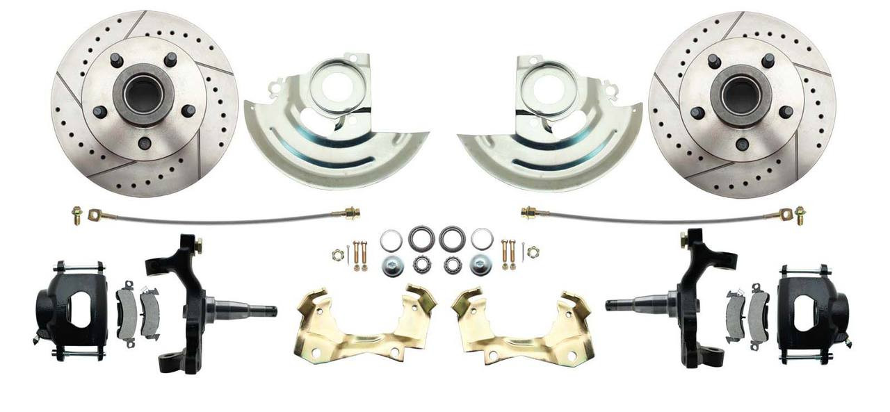 DBK6769DLXB - 1967-1969 Camaro/ Firebird & 1968-1974 Chevy Nova 2" Drop Front Disc Brake Kit w/ Drilled & Slotted Rotors Black Calipers