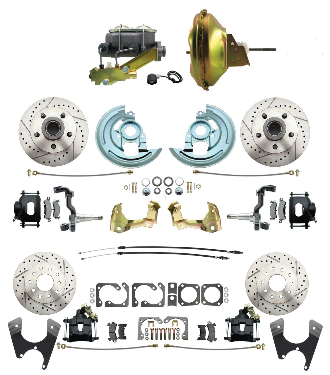 DBK67691012SLXB-GM-219 - 1967-1969 Camaro/ Firebird & 1968-1974 Chevy Nova Front & Rear Power Disc Brake Conversion Kit Drilled & Slotted & Powder Coated Black Calipers Rotors w/ 11"Delco Stamped Booster Kit