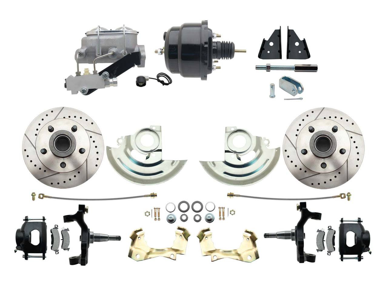 DBK6769DLXB-GM-709 - 1967-1969 F Body 1968-1974 X Body Front Power 2" Drop Disc Brake Conversion Kit Drilled & Slotted & Powder Coated Black Calipers Rotors w/ 8" Dual Powder Coated Black Booster Kit