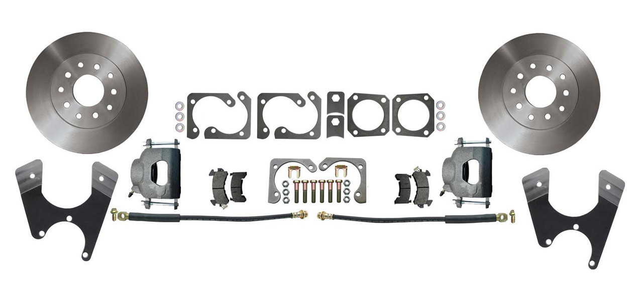 The DBK1012S-NE provides an easy to install, bolt on solution for upgrading your Cars 10 or 12 bolt rear-end to disc brake performance. This kit will dramatically improve your stopping performance from drums to 11" disc rotors!
