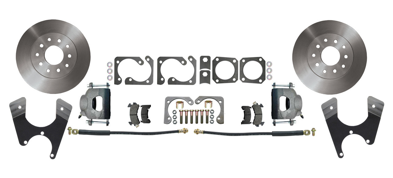 The DBK1012-NE provides an easy to install, bolt on solution for upgrading your Cars 10 or 12 bolt rear-end to disc brake performance. This kit will dramatically improve your stopping performance from drums to 11" disc rotors!