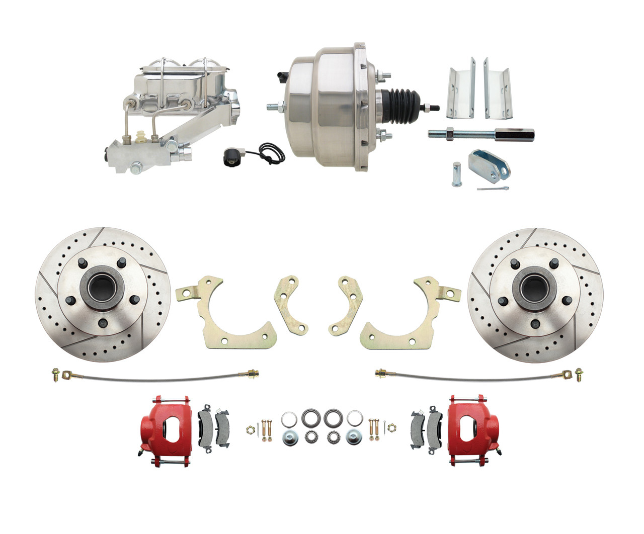 DBK5558LXR-GMFS1-311-1955-1958 GM Full Size Disc Brake Kit w/ 8" Dual Chrome Power Brake Booster Conversion Kit (Impala, Bel Air, Biscayne)