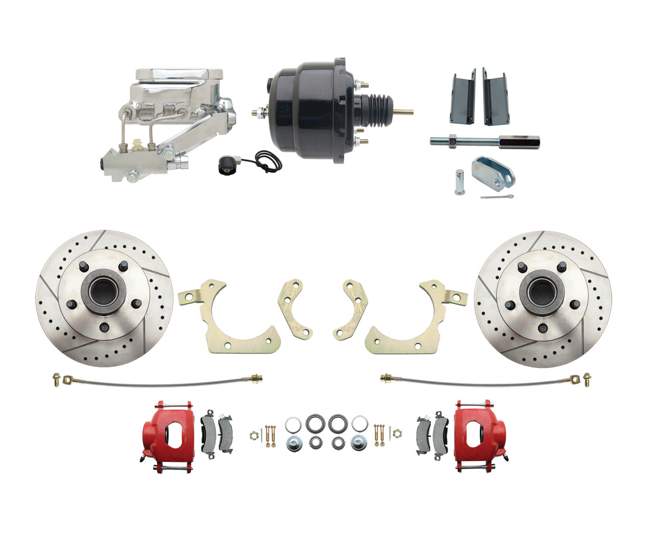 DBK5558LXR-GMFS1-711-1955-1958 GM Full Size Disc Brake Kit w/ 8" Dual Powder Coated / Aluminum Chrome Booster Kit