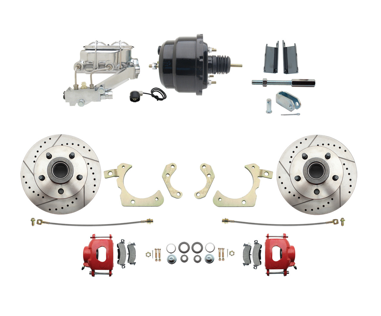 DBK5558LXR-GMFS1-713-1955-1958 GM Full Size Disc Brake Kit w/ 8" Dual Powder Coated / Aluminum Chrome Booster Kit