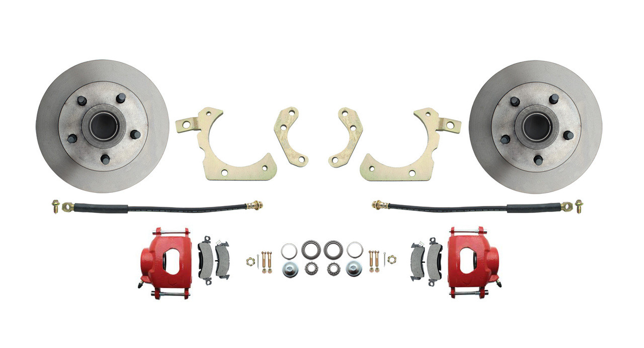 1955-1958 GM Full Size (Impala, Bel Air, Biscayne) Standard Disc Brake Kit Red Caliper Kit Includes
