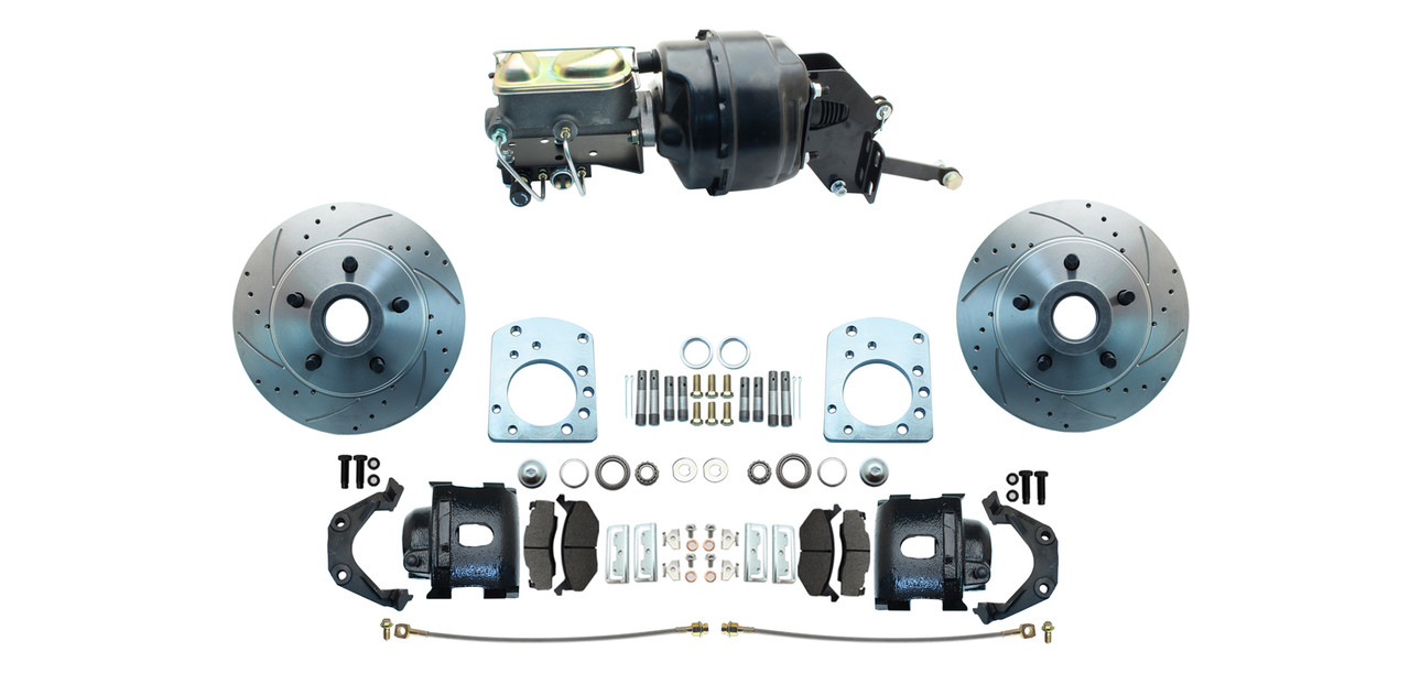 - DBK5771LX-B- 1959-1971 Early Model Dodge D100 Power Disc Brake Kit Drilled & Slotted Rotors Black Calipers