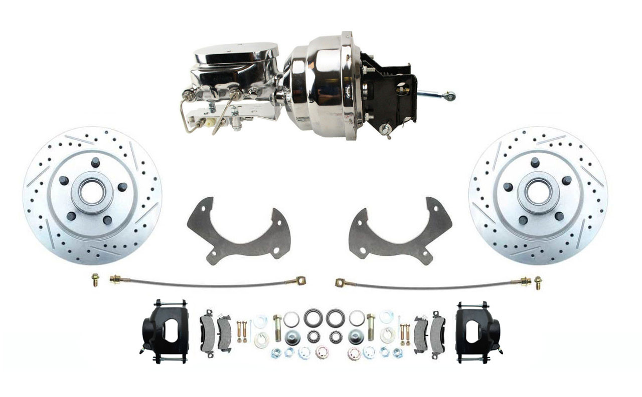 - DBK5772LXR-FD-304 1957-1968 Full Size Ford Disc Brake Kit Drilled/ Slotted Rotors & Black Powder Coated Calipers Chrome Booster Conversion Kit