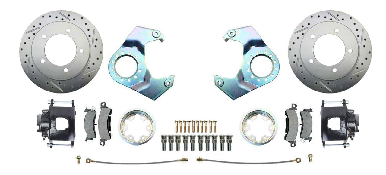 - DBK5EDF-LXB- DANA 30, 44, 25, 27 Axle Front Disc Brake Conversion Kit & Drilled/ Slotted Rotors Black Calipers