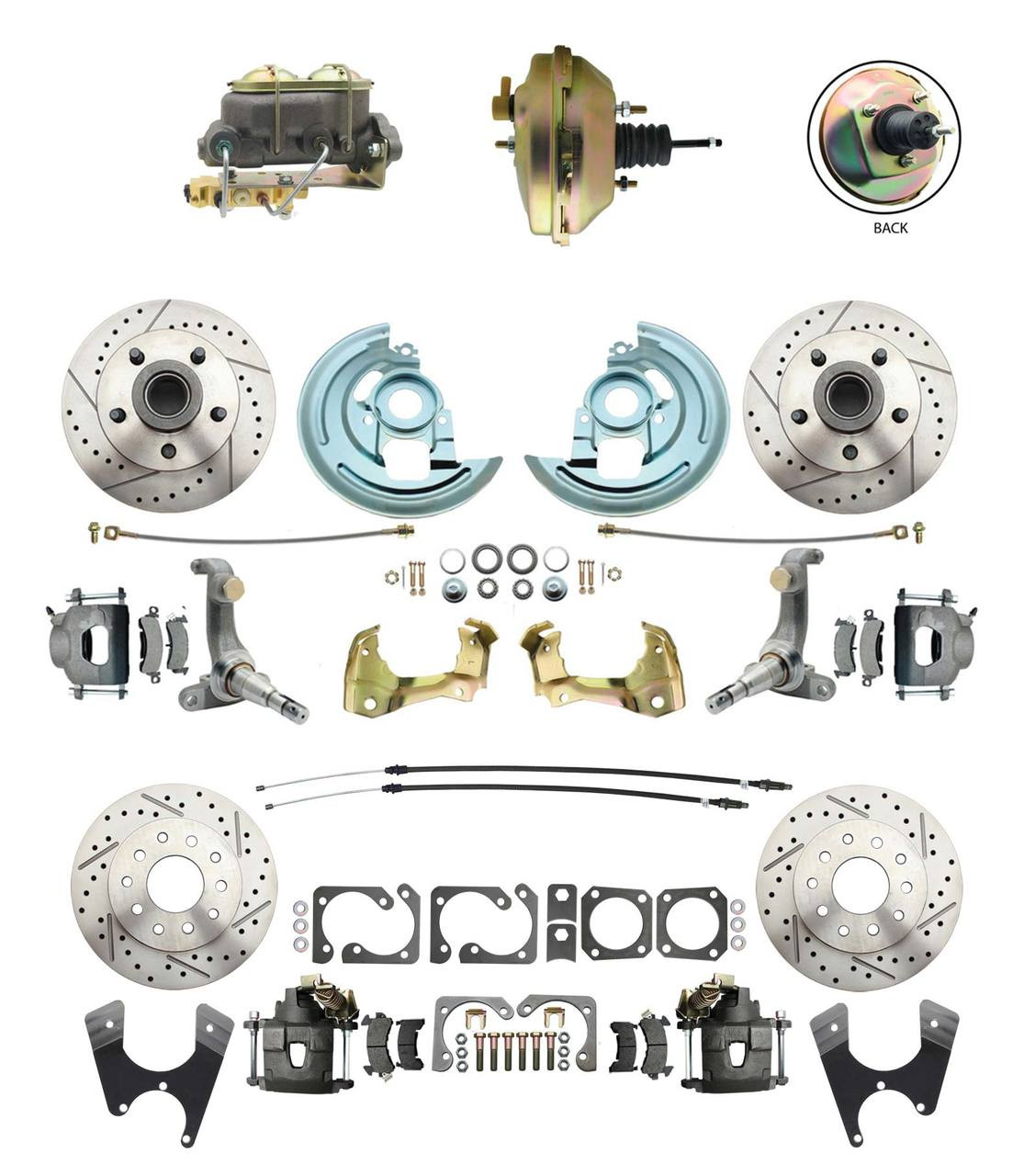 DBK62671012LX-GM-234 - 1962-1967 Nova Power Front & Rear Disc Brake Conversion Drilled Slotted Rotors Kit w/ 9" 3 Stud Booster