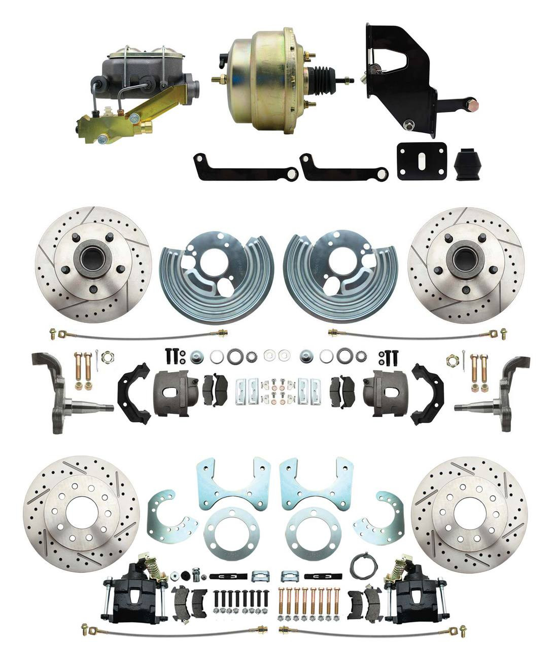 DBK6272834LX-MP-207 1962-72 Mopar B&E Body Front & Rear Disc Brake Conversion Kit w/ Drilled & Slotted Rotors ( Charger, Challenger, Coronet) w/ 8" Dual Zinc Booster Conversion Kit w/ Left Mount valve Kit