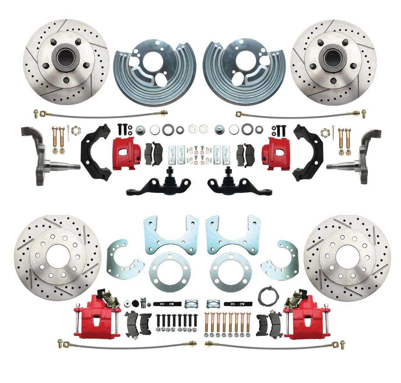 - DBK6272834LXA-45-R - 1962-1972 Mopar A Body Large Bolt Pattern High Performance Disc Brake Conversion Kit w/ Powder Coated Red Calipers
