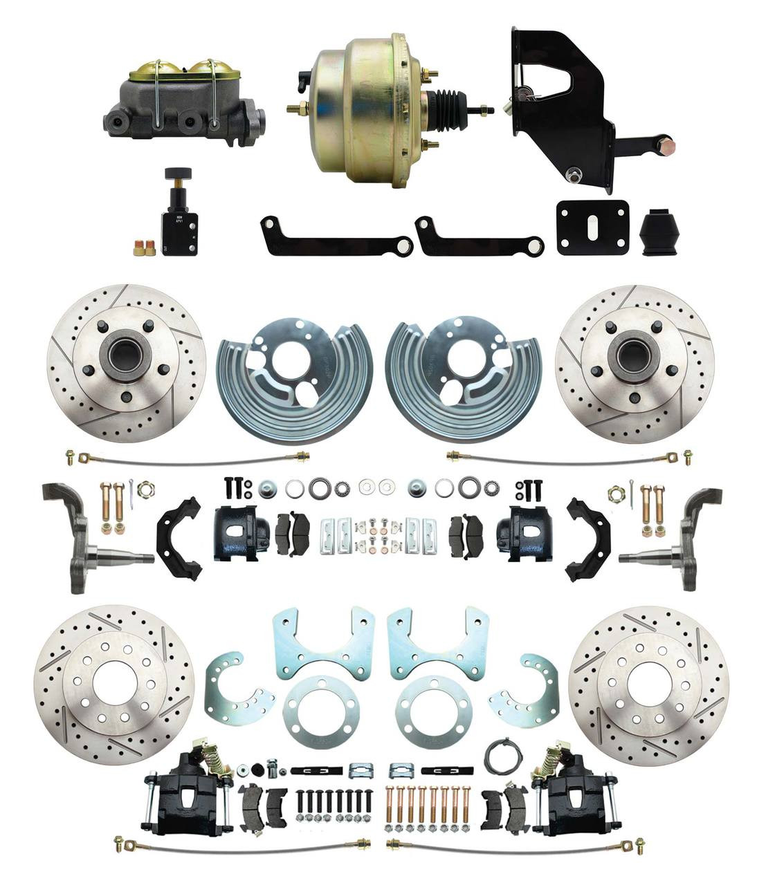 DBK6272834LXB-MP-208 1962-72 Mopar B&E Body Front & Rear Disc Brake Conversion Kit w/ Drilled & Slotted Rotors & Powder Coated Black Calipers ( Charger, Challenger, Coronet) w/ 8" Dual Zinc Booster Conversion Kit w/ Adjustable Valve