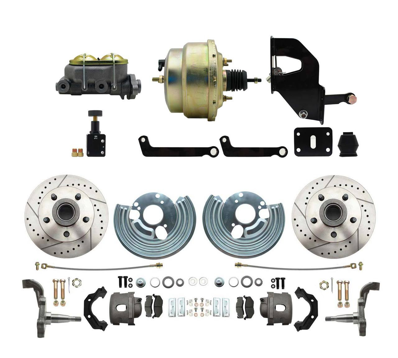 DBK6272LX-MP-203 1962-1972 Mopar B & E Body Front Disc Brake Conversion Kit w/ Drilled & Slotted Rotors ( Charger, Challenger, Coronet) w/ 8" Dual Zinc Booster Conversion Kit w/ Adjustable Proportioning Valve