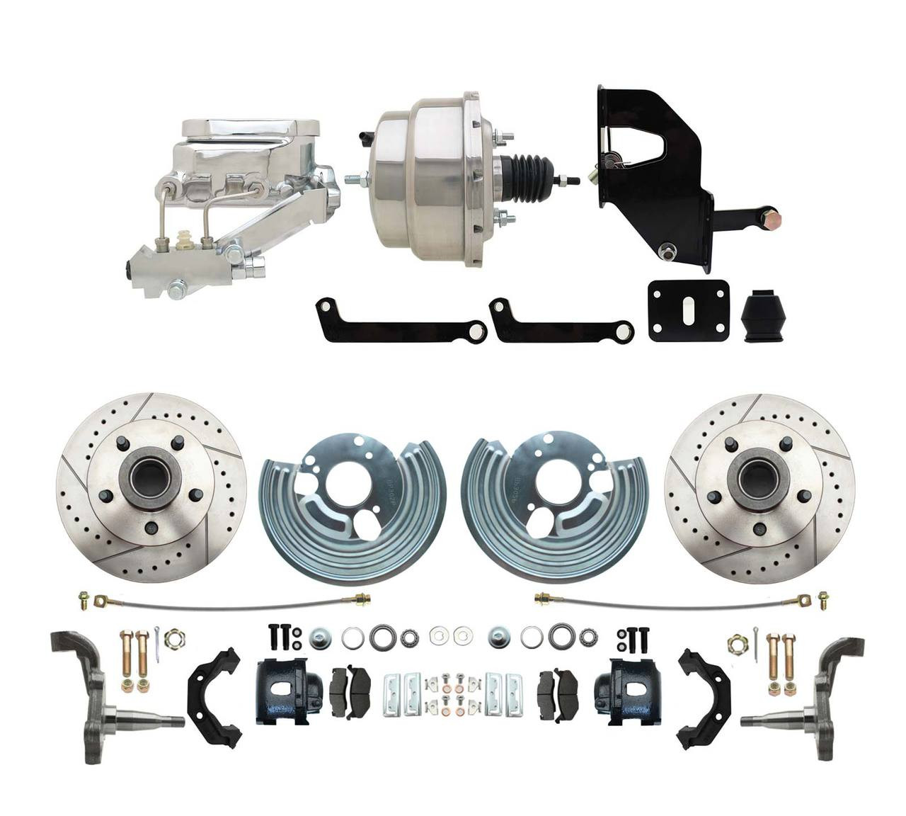 DBK6272LXB-MP-306 1962-72 Mopar B&E Body Front Disc Brake Conversion Kit w/ Drilled & Slotted Rotors & Powder Coated Black Calipers ( Charger, Challenger, Coronet) w/ 8" Dual Chrome Booster Conversion Kit w/ Flat Top Chrome Master Cylinder & Valve
