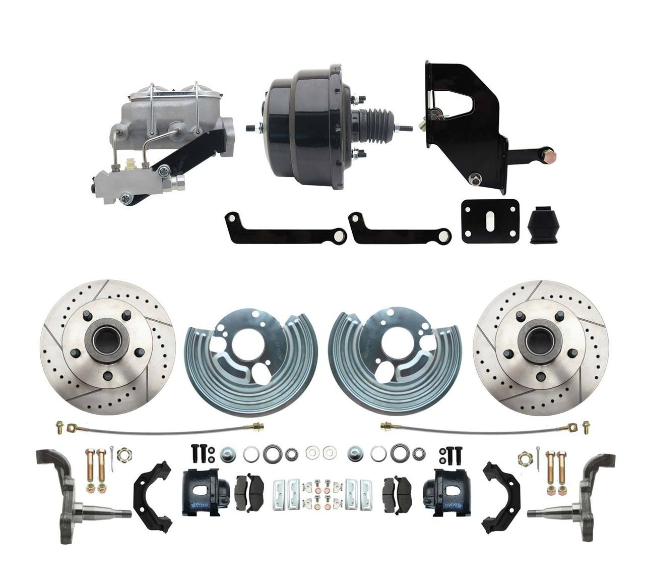 DBK6272LXB-MP-705 1962-72 Mopar B&E Body Front Disc Brake Conversion Kit w/ Drilled & Slotted Rotors & Powder Coated Black Calipers ( Charger, Challenger, Coronet) w/ 8" Dual Powder Coated Black Booster Conversion Kit Aluminum Dual Master & Valve