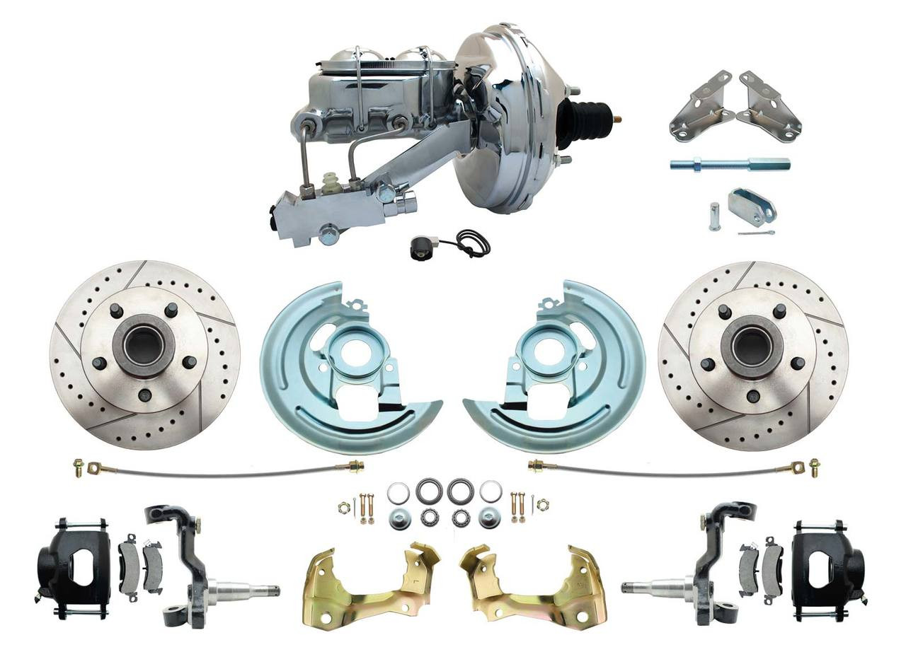 DBK6472LXB-GM-340 - 1964-1972 GM A Body Front Power Disc Brake Conversion Kit Drilled/ Slotted Rotors Powder Coated Black Calipers w/ 9" Chrome Booster Kit