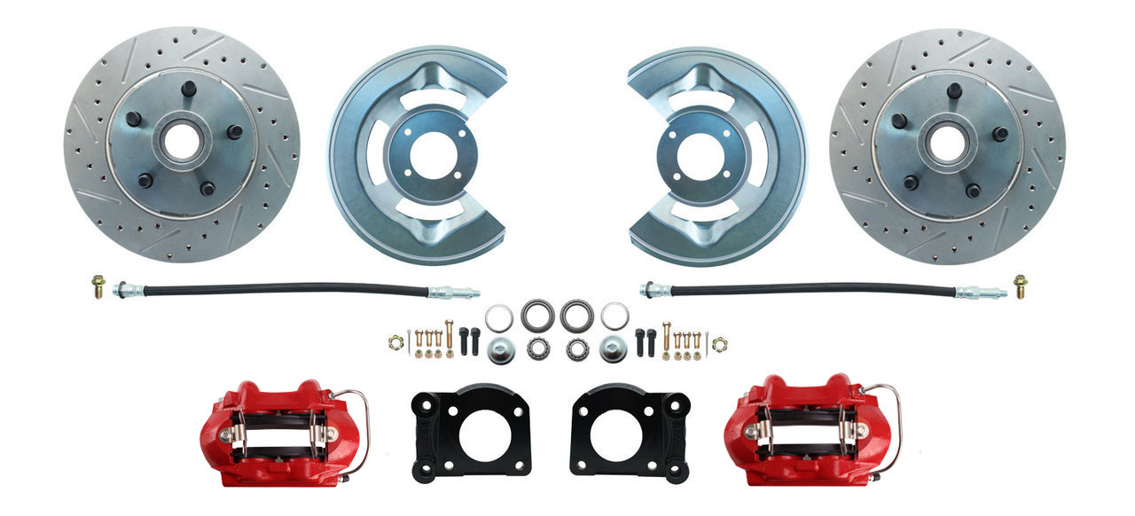 - DBK6473LX-R - 1964.5 - 1973 Mustang Disc Brake Conversion Kit Drilled & Slotted Rotors Red Calipers