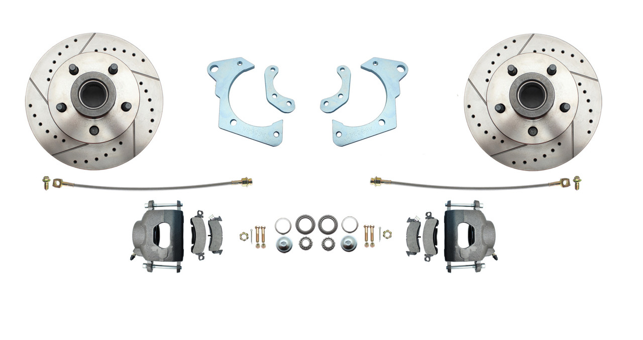 Easy bolt on disc brake kit with no modifications needed. Uses the original drum spindle on the car. Must use 15" or larger rims