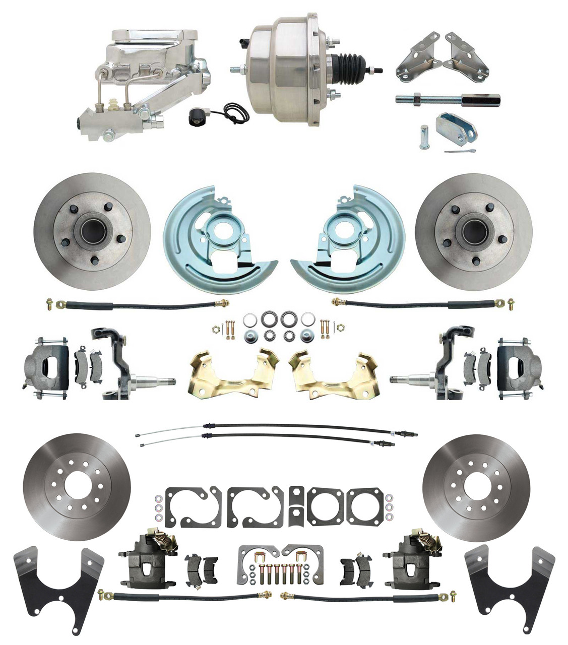 DBK67691012S-GM-328 - 1968-1969 Camaro/ Firebird & 1968-1974 Chevy Nova Front & Rear Power Disc Brake Conversion Kit Standard Rotors w/8" Dual Chrome Flat Top Booster Kit
