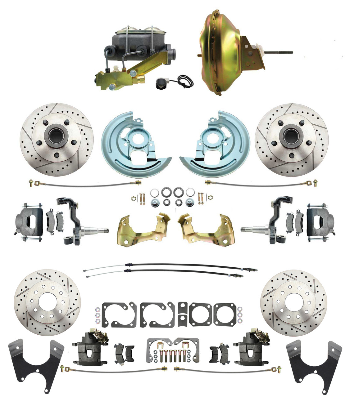 DBK67691012SLX-GM-219 - 1968-1969 Camaro/ Firebird & 1968-1974 Chevy Nova Front & Rear Power Disc Brake Conversion Kit Drilled & Slotted Rotors w/ 11" Delco Stamped Booster Kit