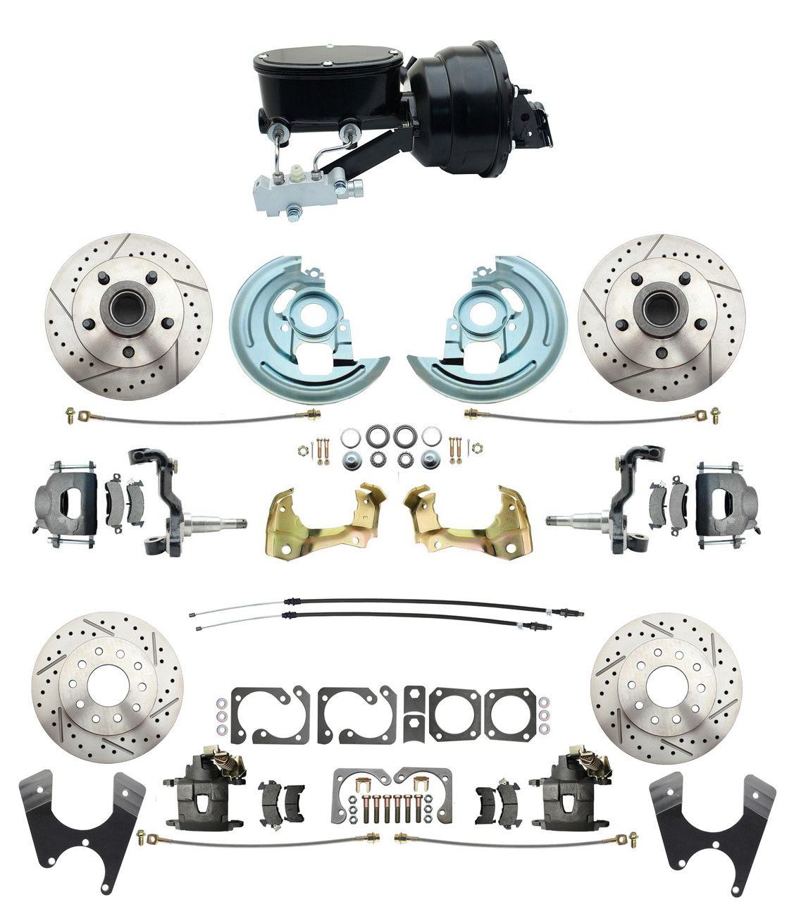 DBK67691012SLX-GM-415 - 1968-1969 Camaro/ Firebird & 1968-1974 Chevy Nova Front & Rear Power Disc Brake Conversion Kit Drilled & Slotted Rotors w/ 8"Dual Zinc Booster Kit w/ 8" Dual Powder Coated Black Booster Kit