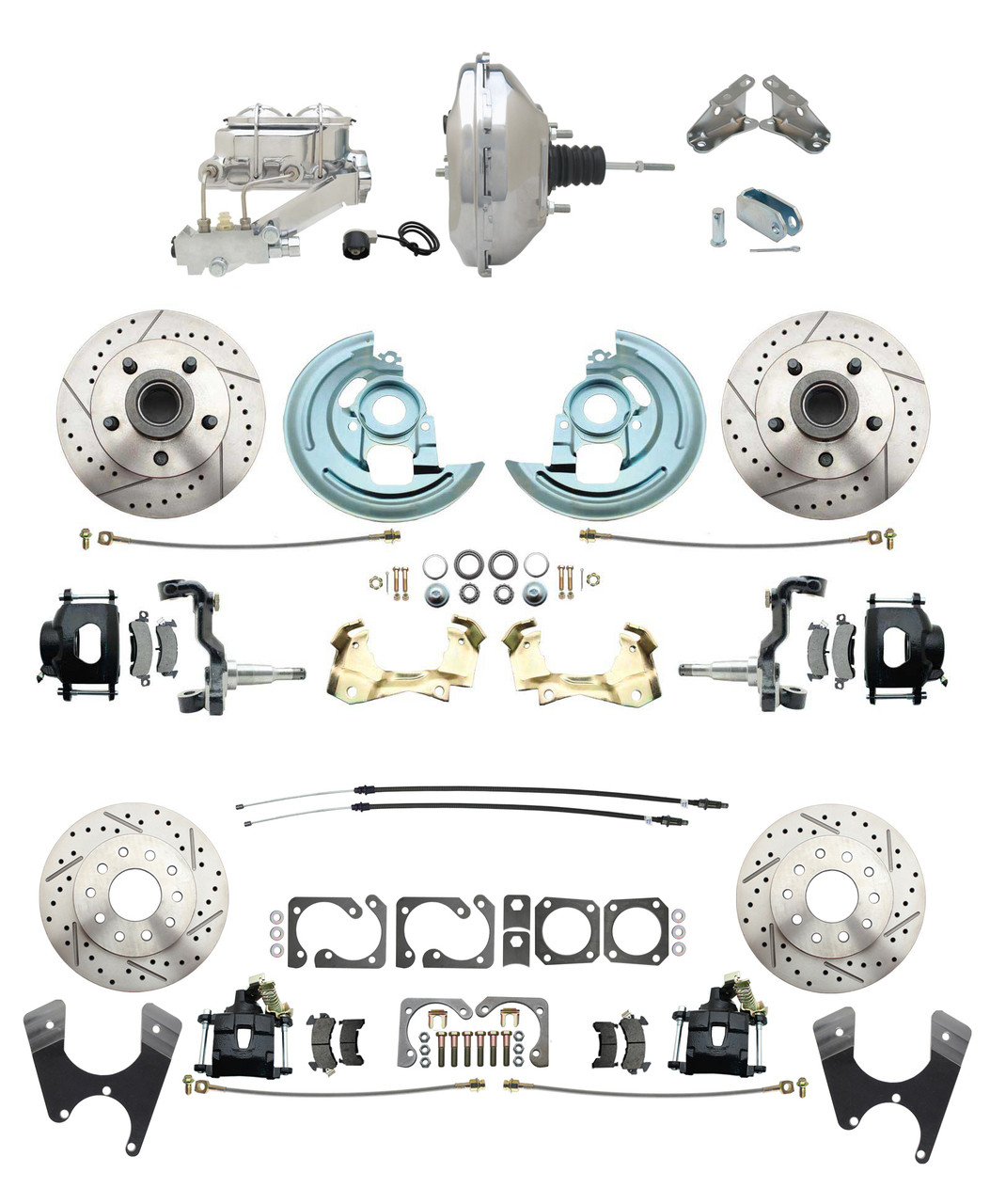 DBK67691012SLXB-GM-343 - 1968-1969 Camaro/ Firebird & 1968-1974 Chevy Nova Front & Rear Power Disc Brake Conversion Kit Drilled & Slotted & Powder Coated Black Calipers Rotors 11" Chrome Booster Kit