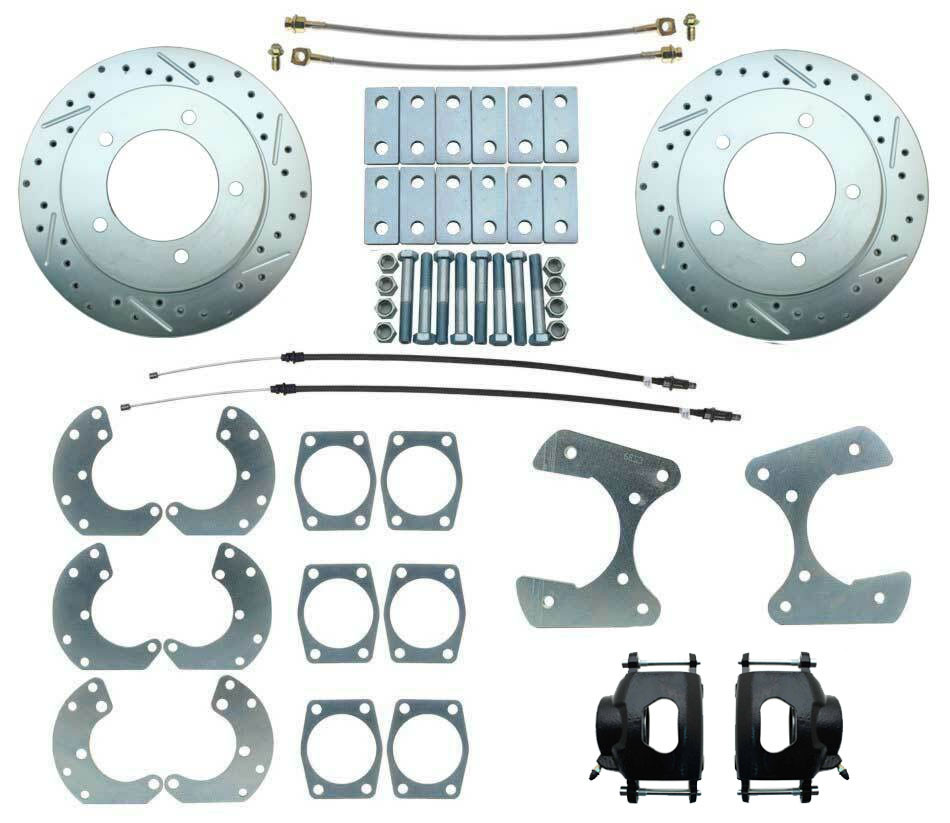 The DBK9TRK provides an easy to install, bolt on solution for upgrading your Pre-1987 Ford 9” rear-end light truck to disc brake performance. Many consumers may be unsure of which size 9” rear-end their vehicle has. MBM’s kit is unique in that it provides all the brackets and flanges that fit the three most popular sizes of the 9” rear end (3-3/8” x 2”, 3-1/2”x 2-3/8”, 3-9/16” x 2”). Top that off with 5 on 5 1/2 bolt pattern rotors and you eliminate much of the customer guess-work when purchasing and installing the kit. The DBK9 comes in both standard and high performance models.