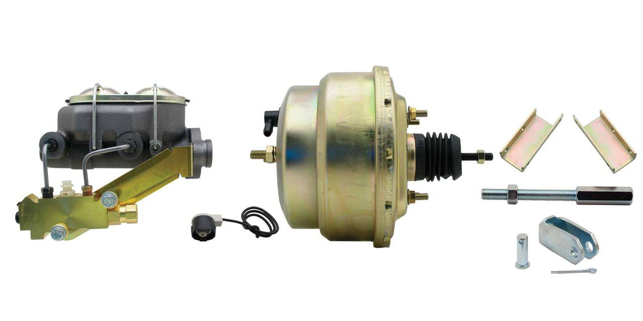 - GMFS1-211- 1955-1958 GM Full Size (Impala, Bel Air) 8" Dual Zinc Booster Conversion Kit w/ Cast Iron Master Cylinder Left Mount Disc/ Disc Proportioning Valve Kit