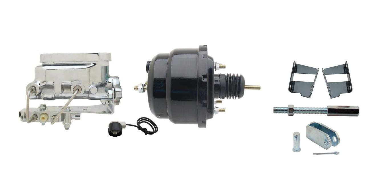 - GMFS2-724- 1959-1964 GM Full Size (Impala, Bel Air) 8" Dual Powder Coated Black Booster Conversion Kit w/ Chrome Flat Top Master Cylinder Bottom Mount Disc/ Disc Proportioning Valve Kit
