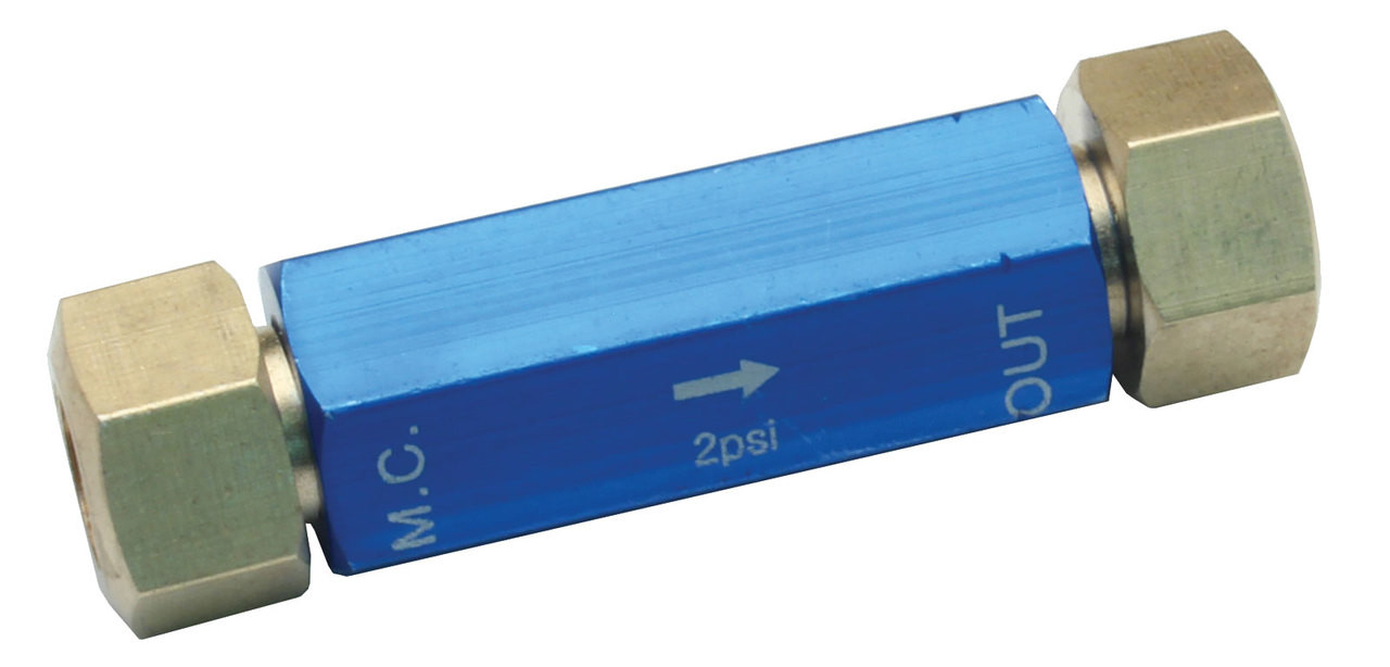 This 2 PSI residual valve is installed inline between the master cylinder and disc brake calipers to keep 2 PSI of residual pressure at the caliper after the brake pedal is released.